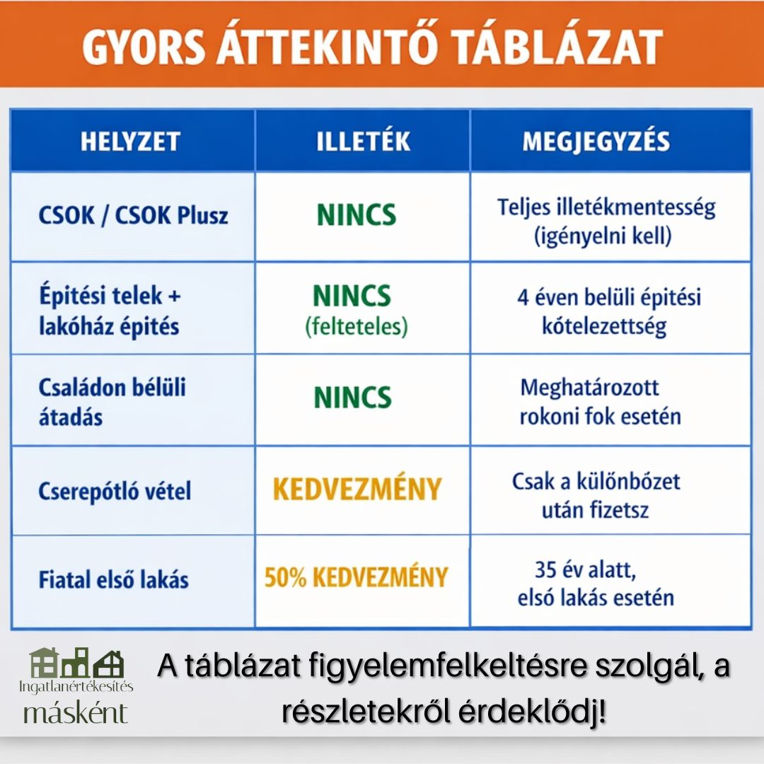🟢 Ha az új ingatlan értéke alacsonyabb, mint a régié → illetéket egyáltalán nem fizetsz.