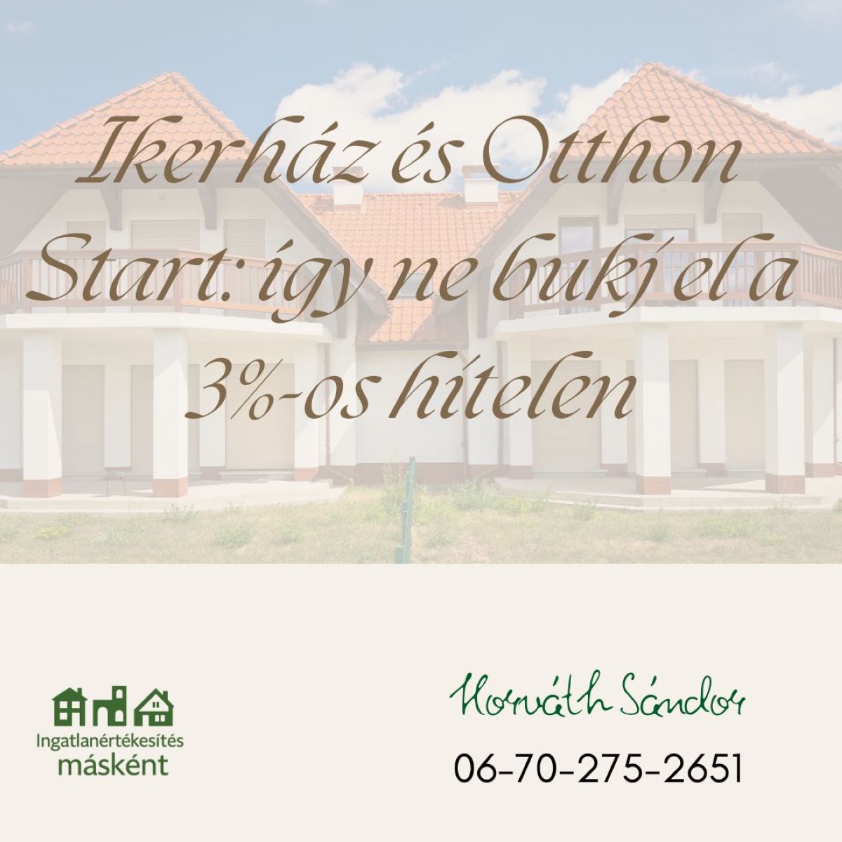 Egy hirdetés önmagában nem ad el ingatlant. A sikerhez célzott stratégia, professzionális fotók, pontos árpozíció és erős kommunikáció kell. Kérj kötetlen konzultációt, és mutatom, hogyan lesz a hirdetésből valódi eladás.